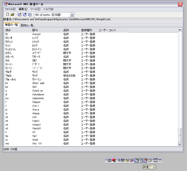 辞書ファイルの登録とは別に、個別にユーザーの辞書として書き込めるタイプのものが