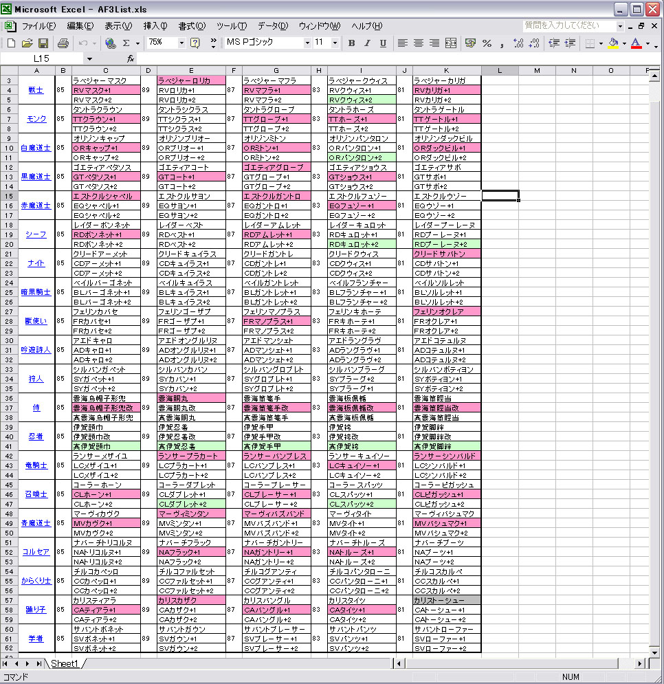 ヘイスト装備やらジョブ装備やら、モノによってはohぐれいと!な物もありーの